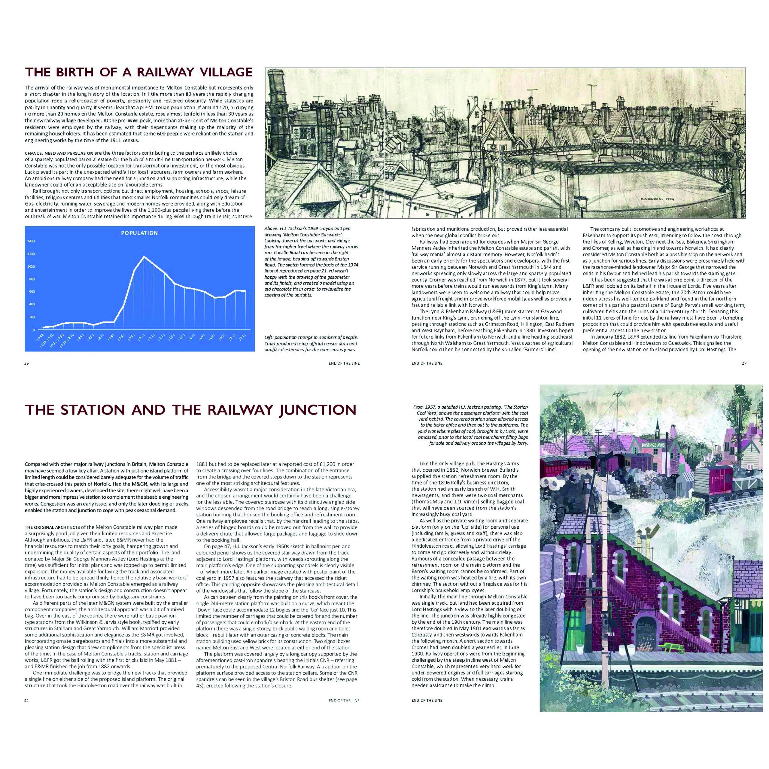 An illustrated history of Melton Constable and the role of the Norfolk village as the hub of the former M&GN railway network. Sketches, drawings, paintings and linocut prints by Norfolk artist HJ Jackson, whose father and grandfather worked on the railway. Photographs of the railway’s demolition by JA (Peter) Jackson, cousin of the artist, who followed his father and grandfather onto the railway. As well as a history of the village, station, railway junction and locomotive works, the book profiles the Jackson family and looks at the remnants of the railway that can be found today.